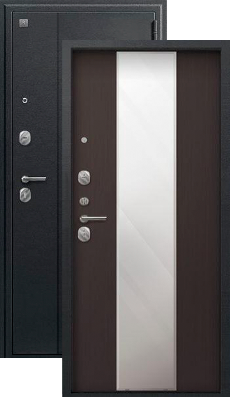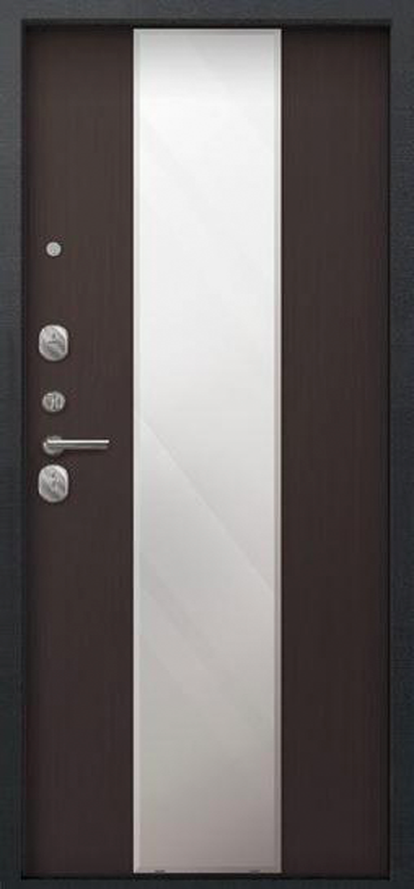 Дверь входная Сезам А-04 зеркало (2025), 2 замка, 1 мм металл, (черный сатин+темная лиственница)