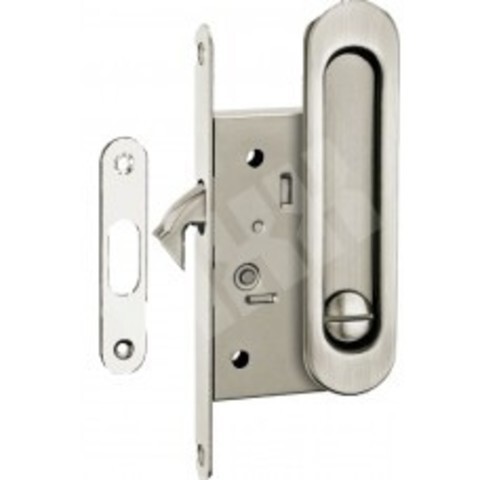 Ручка овал для раздвижных дверей с замком Тикс INSDH-BK 501 SN (цена за комплект), цвет никель матовый (гарантия - 12 месяцев)