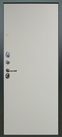 Имеет высокую прочность, благодаря толщине стали 1,8 мм. Оснащена двумя надежными замками, минимум один из которых имеет высший класс взломостойкости по ГОСТ 5089-2003 (4 класс). Есть врезная броненакладка, защищающая цилиндровый замок от высверливания. Она утоплена в дверное полотно, поэтому ее практически невозможно сбить. Есть ночная задвижка — дополнительная защита от взлома. Никто не сможет зайти, вскрыв замок, когда вы дома.