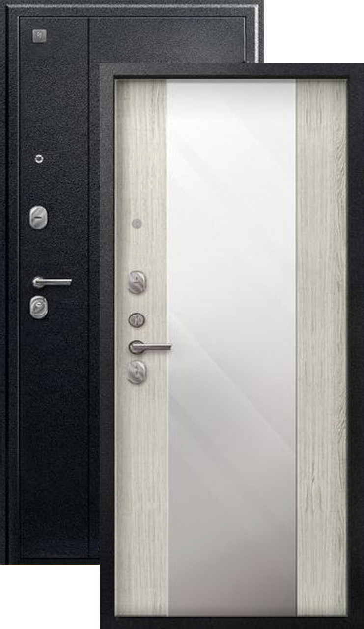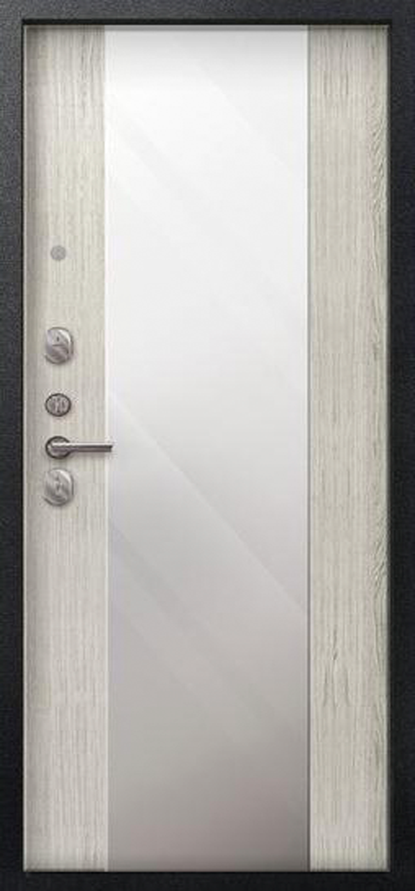 Качественная российская дверь с большим зеркалом на внутренней панели со стильной внешней отделкой муар черный. Прекрасно подойдет для установки в квартиру. Надежная модель, которая прослужит долгие годы.