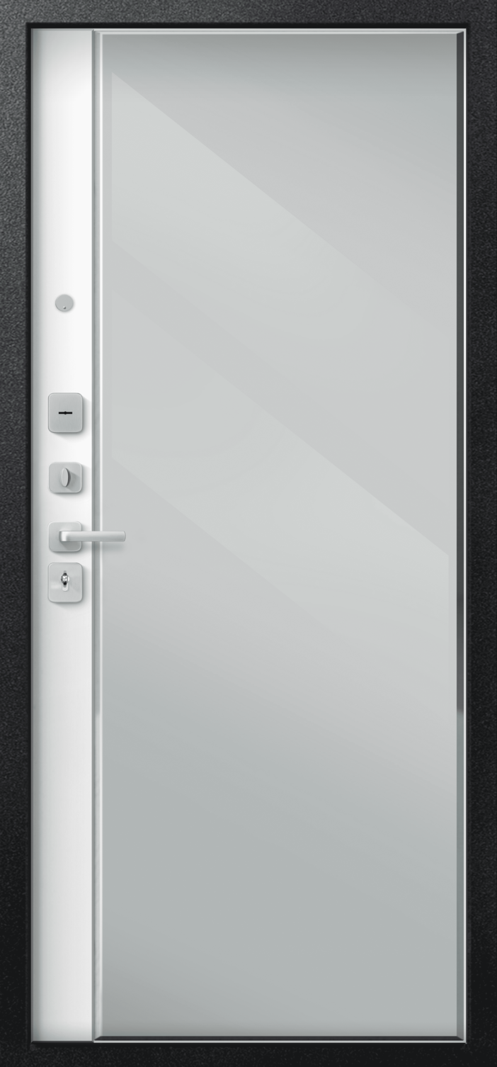 Качественная российская дверь с большим зеркалом на внутренней панели со стильной внешней отделкой муар черный. Прекрасно подойдет для установки в квартиру. Надежная модель, которая прослужит долгие годы.