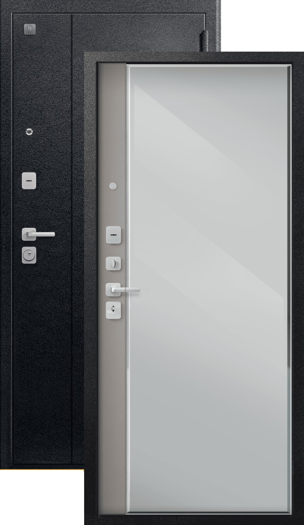 Теплая дверь входная Сезам V-04 зеркало (2026), 2 замка, 1,4 мм металл, (черный муар+грей кашемир)