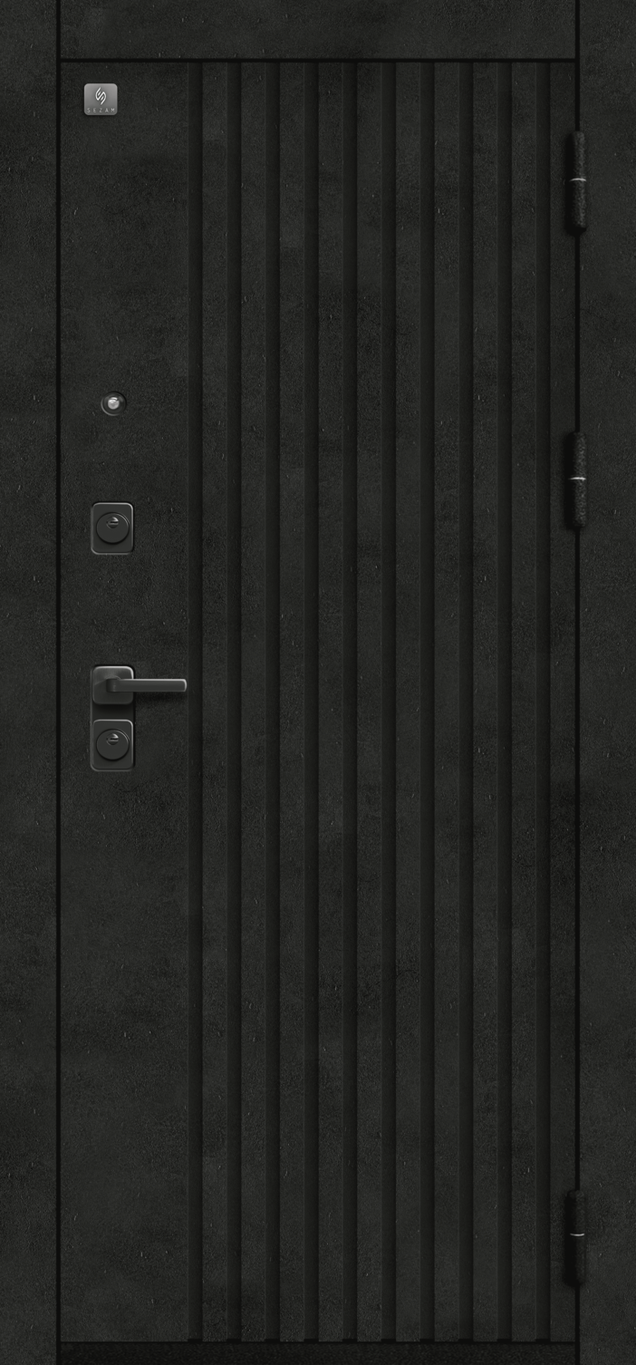 Повышенной надежности российская дверь со стильной внешней отделкой муар черный/бетон темный и красивой декоративной панелью толщиной 8 в цвете софт ясень грей. Прекрасно подойдет для установки в квартиру. Солидная модель, которая хорошо защитит и подчеркнет статус.