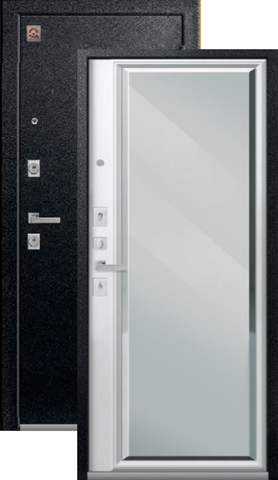 Повышенной надежности российская сейф-дверь с большим зеркалом на внутренней панели со стильной внешней отделкой муар графит. Прекрасно подойдет для установки в квартиру. Солидная модель, которая хорошо защитит и подчеркнет статус.