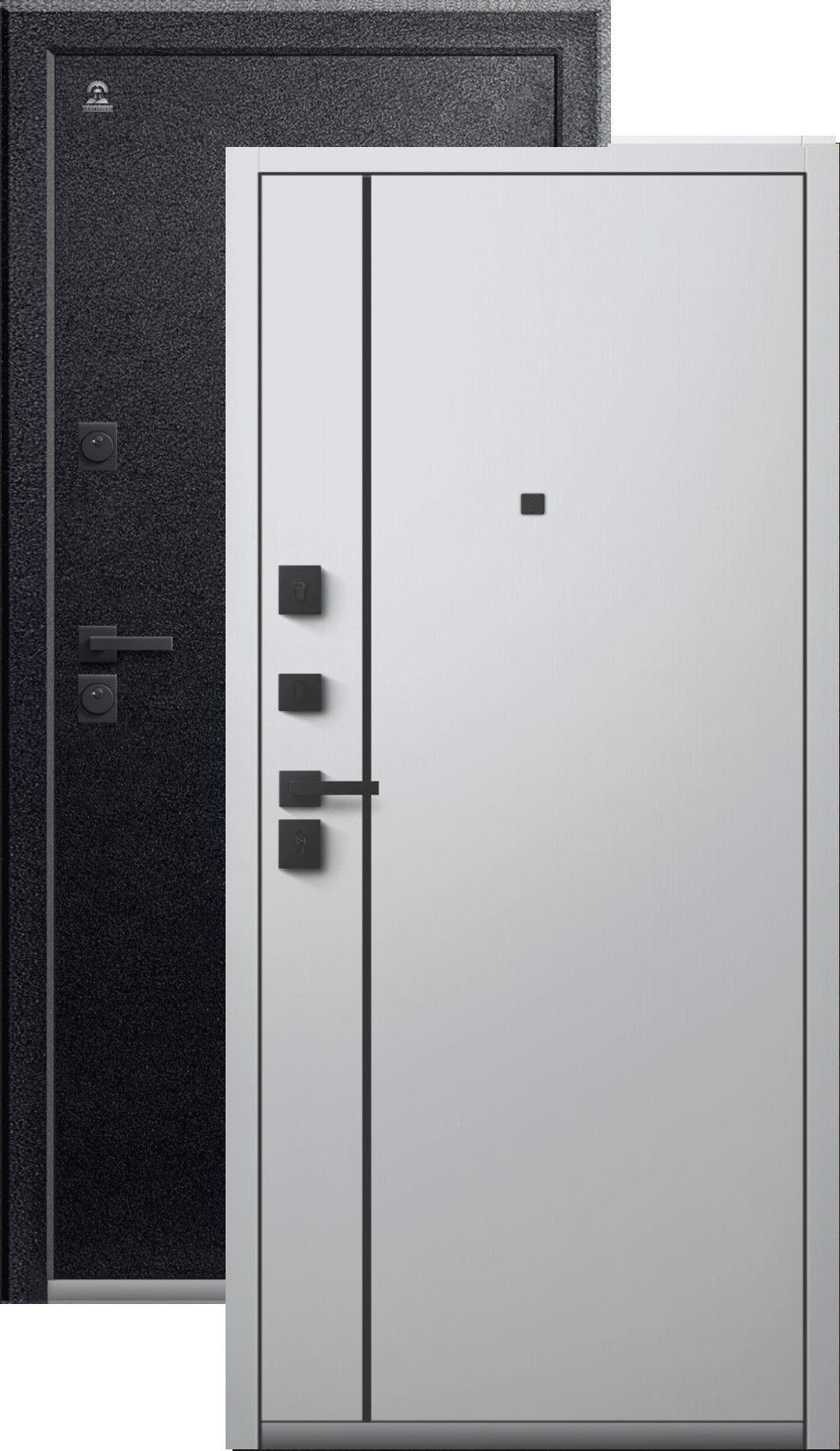 Повышенной надежности российская сейф-дверь со стильной внешней отделкой муар черный и красивой декоративной панелью толщиной 16 в цвете кашемир белый. Прекрасно подойдет для установки в квартиру. Солидная...
