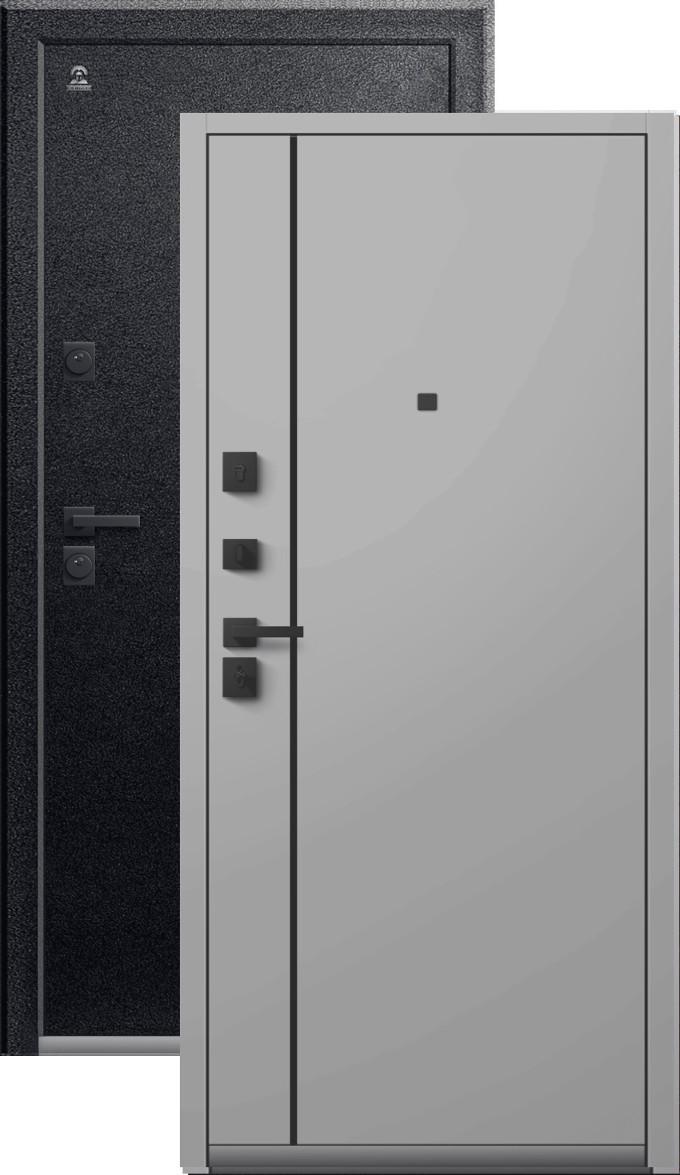 Повышенной надежности российская сейф-дверь со стильной внешней отделкой муар черный и красивой декоративной панелью толщиной 16 в цвете кашемир сильвер. Прекрасно подойдет для установки в квартиру. Солидная модель, которая хорошо защитит и подчеркнет статус.