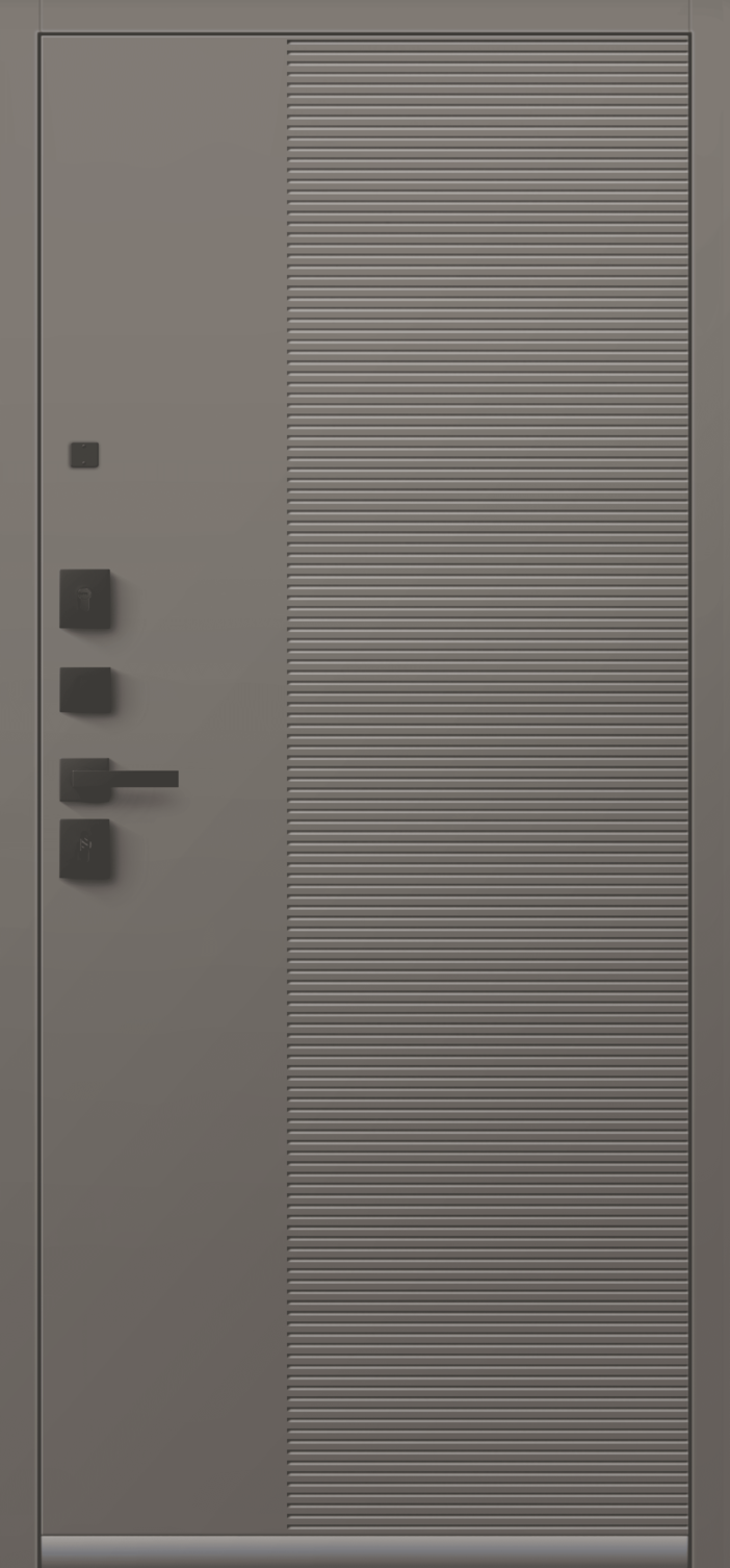 Имеет очень высокую прочность, благодаря толстой стали 2 мм. Оснащена двумя надежными замками, минимум один из которых имеет высший класс взломостойкости по ГОСТ 5089-2003 (4 класс). Есть врезная броненакладка, защищающая цилиндровый замок от высверливания. Она утоплена в дверное полотно, поэтому ее практически невозможно сбить. Есть ночная задвижка — дополнительная защита от взлома. Никто не сможет зайти, вскрыв замок, когда вы дома.