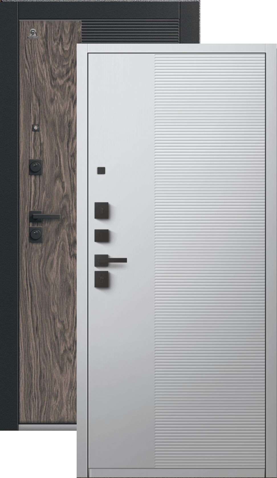Имеет очень высокую прочность, благодаря толстой стали 2 мм. Оснащена двумя надежными замками, минимум один из которых имеет высший класс взломостойкости по ГОСТ 5089-2003 (4 класс). Есть врезная броненакладка, защищающая цилиндровый замок от высверливания. Она утоплена в дверное полотно, поэтому ее практически невозможно сбить. Есть ночная задвижка — дополнительная защита от взлома. Никто не сможет зайти, вскрыв замок, когда вы дома.