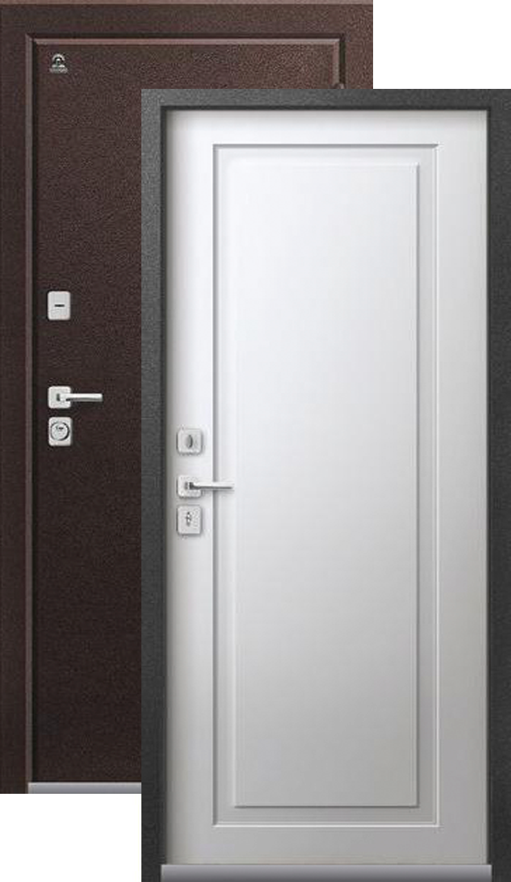 Дверь имеет хорошую прочность из-за толщины металла 1,4 мм. Оснащена двумя надежными замками, минимум один из которых имеет высокий третий класс взломостойкости по ГОСТ 5089-2003 и обладает повышенными охранными свойствами. Есть врезная броненакладка, защищающая цилиндровый замок от высверливания. Она утоплена в дверное полотно, поэтому ее практически невозможно сбить. Есть ночная задвижка — дополнительная защита от взлома. Никто не сможет зайти, вскрыв замок, когда вы дома.